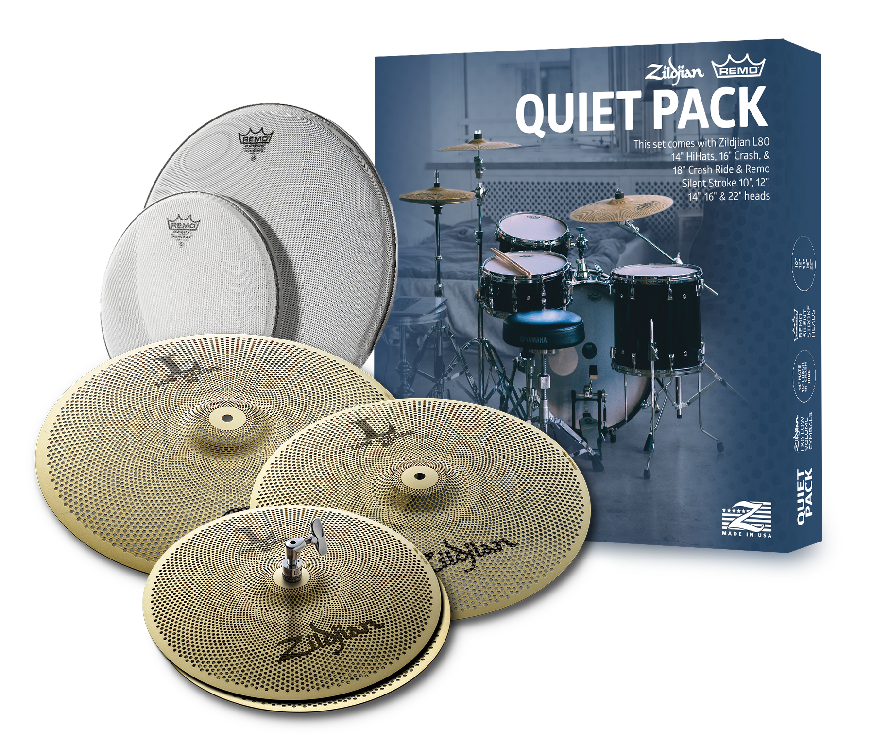 Zildjian LV468RH L80 Low Volume Pack LV468 w/ Remo SilentStroke Heads